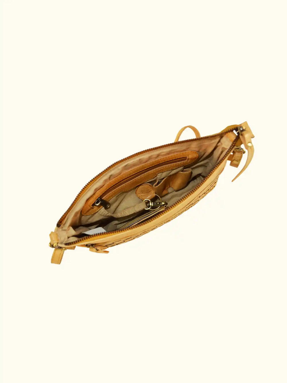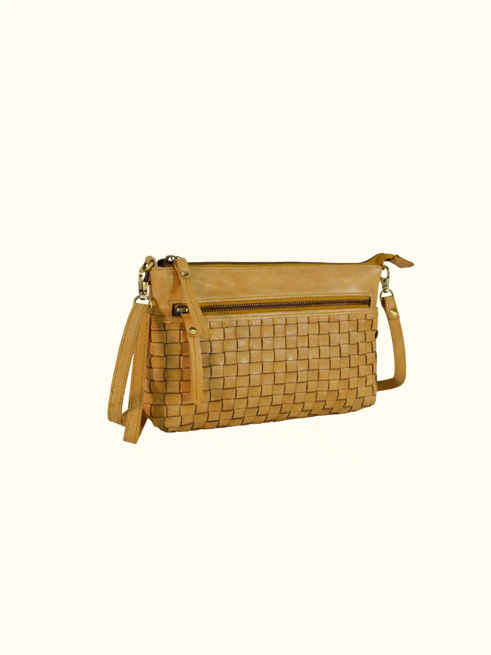 A medium size cross body with vintage & woven look. With lots of functionality inside & signature weave set this bags apart and made them must-haves.