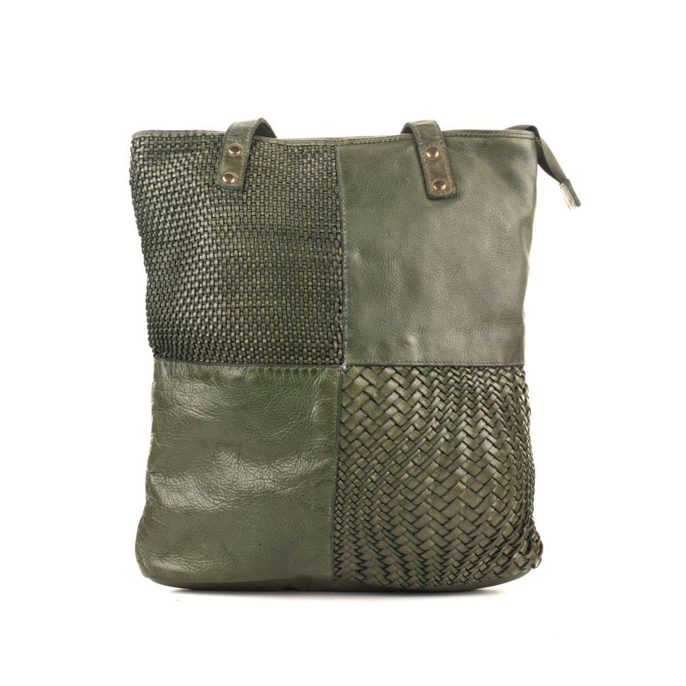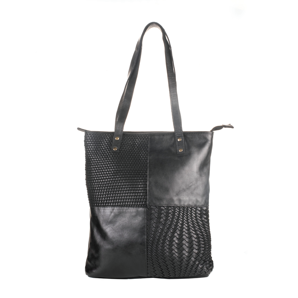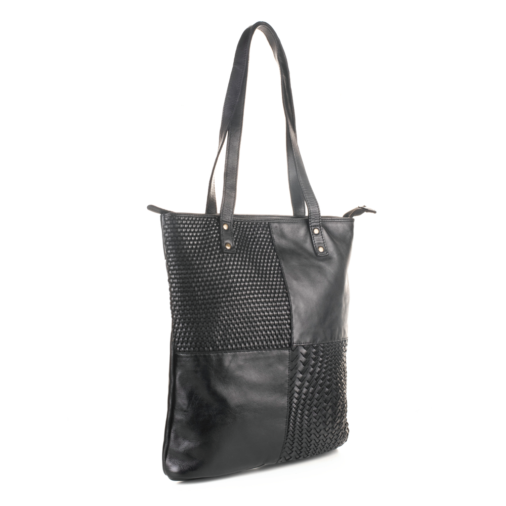 • Unique leather patchwork design for a chic look